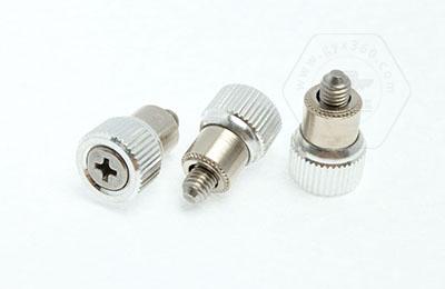手緊螺釘?shù)膲恒T套具有壓花齒,壓裝于于機箱或薄鈑孔內(nèi)(注:薄板的鉆孔徑相對應(yīng)彈簧螺釘?shù)膲糊X徑有一定要求的,形成一個外露的彈簧螺釘,用手?jǐn)Q另一端(即手?jǐn)Q端).因其里面固定有彈簧,螺釘相對于薄板的另一端來回進出。