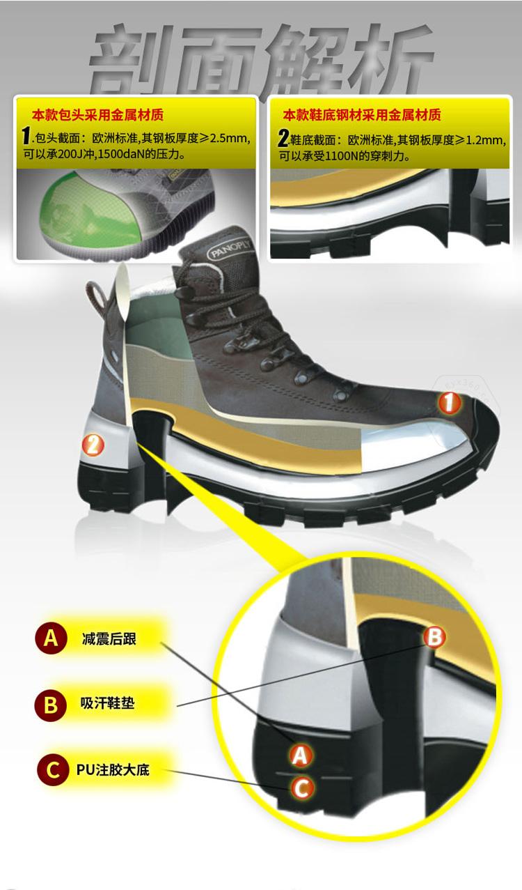 • 產(chǎn)品描述:毛面牛皮鞋面,聚酰胺尼龍襯里,PHYLON柔性中底,橡膠大底。防砸、防刺穿、防靜電、耐磨、耐油、透氣、耐250℃高溫。