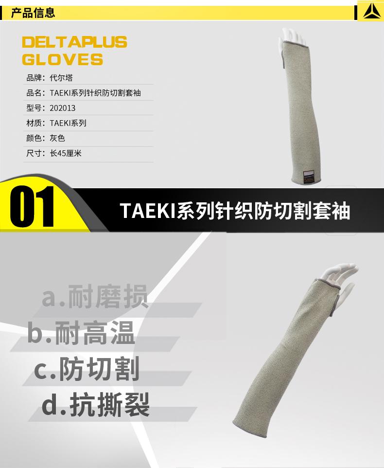 商品名稱:代爾塔 防切割套袖 隔熱防割手套工作勞保手套 耐磨抗撕裂耐高溫工業(yè)級針織高強度202013 淺灰色 一只(不分左右手)