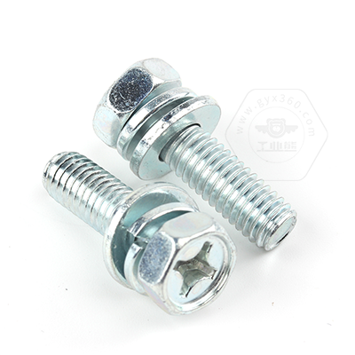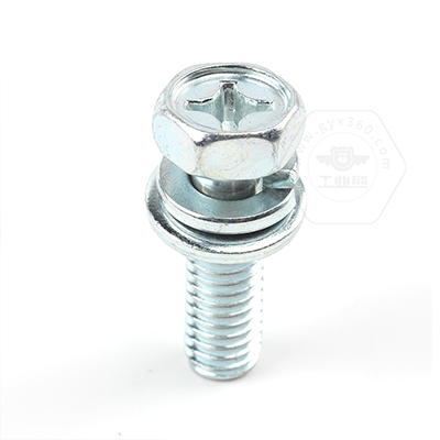 工業(yè)熊碳鋼8.8級藍白鋅48h十字槽凹穴六角頭帶平彈墊組合螺釘GB9074.13