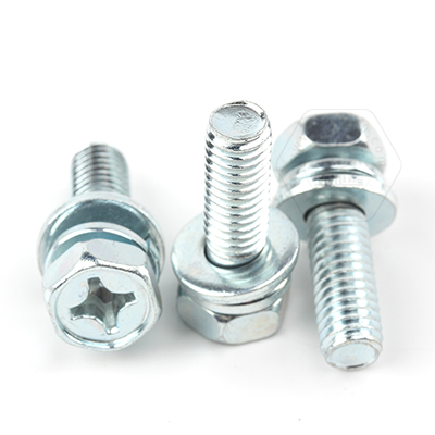 • 工業(yè)熊碳鋼8.8級藍白鋅48h十字槽凹穴六角頭帶平彈墊組合螺釘GB9074.13