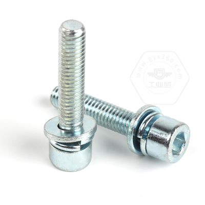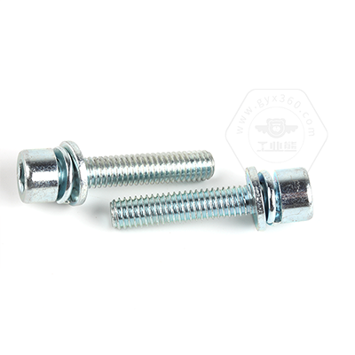 工業(yè)熊碳鋼8.8級(jí)藍(lán)白鋅內(nèi)六角圓柱頭帶平彈墊組合螺釘(無滾花)DIN912平彈墊三組合