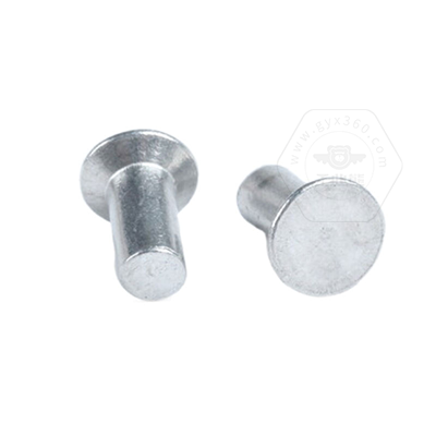 • 產(chǎn)品描述:GB869 沉頭鉚釘,是實心鉚釘?shù)囊环N,也被稱為平頭鉚釘、平錐頭實心鉚釘、平頭敲釘、沉頭實心鉚釘、平帽敲擊鉚釘。GB869 沉頭鉚釘由頭部和釘桿兩部分構成,用于將事先制有釘孔的兩個結構件鉚接在一起的一類緊固件,其依靠自身形變或過盈連接被鉚接件的零件。用于表面須平滑,強度要求不高,螺紋擰入并緊固的場合。標準規(guī)定公稱直徑d=1~16mm,材料有碳素鋼、不銹鋼、銅及其合金、鋁及其合金。GB869 沉頭鉚